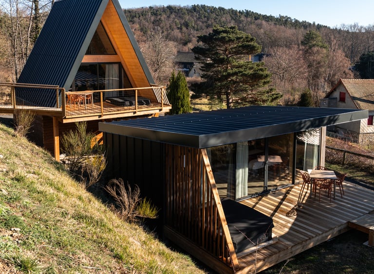 Our 4-star chalets, spacious and fully equipped, are designed to offer a unique experience in Auvergne, whether you are travelling as a couple, with friends or with family. Each chalet features carefully curated décor and all the comfort needed for an unforgettable stay.