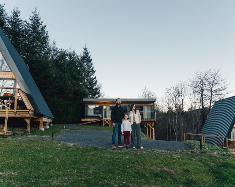After much reflection and a series of imagined projects, Les Terrasses du Grillon were born: four warm and welcoming chalets designed as a natural extension of our desire to host, share and showcase this corner of Auvergne that we love so deeply. This new chapter, launched in 2025, represents a meaningful continuation of our human and family journey.