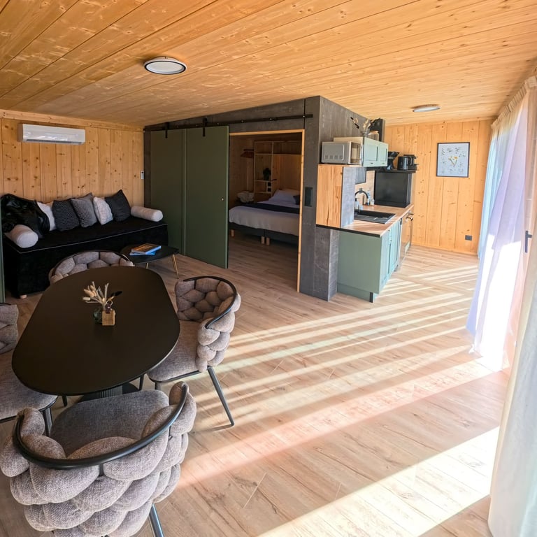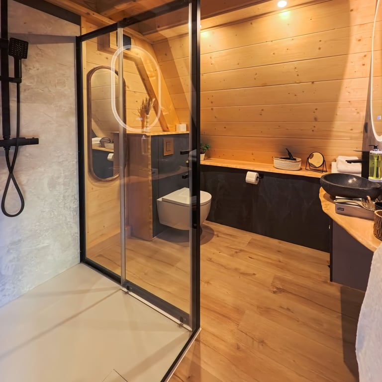 Discover, through images, the elegance and comfort of our chalets, where every detail invites you to unwind and escape.